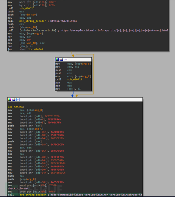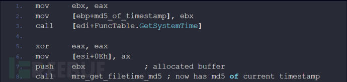 FQDN是通过获取一个硬编码域并在其前面加上hexlify(md5,时间戳)来创建的。在下图中,我们将其显示为一个代码块,用于过滤掉垃圾指令。