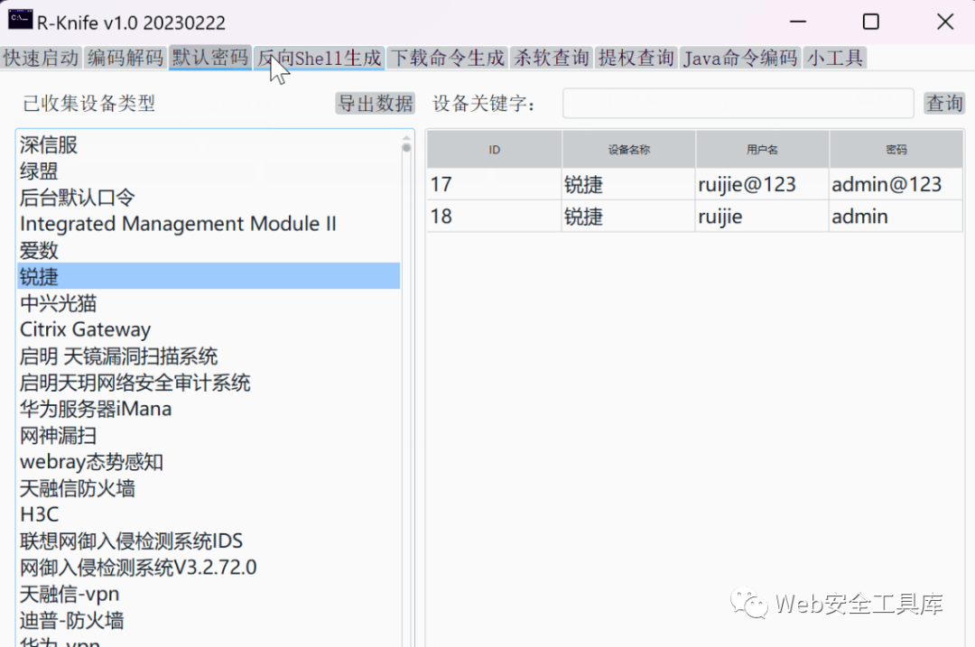 项目地址:https://github.com/qianxiao996/R-Knife0x01、项目介绍什么是R-Knife?这是一个渗透测试综合工具箱。0x02、使用方法1、使用方法下载exe双击即