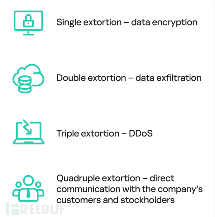 就向受害者施加压力的工具而言,Cuba组织目前存在四种勒索模式: