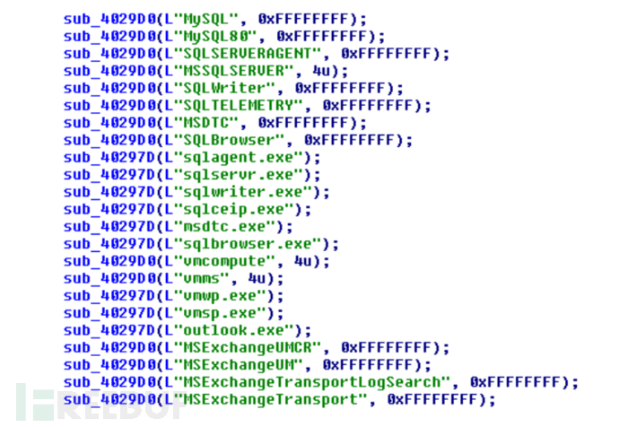 该恶意软件会搜索与流行AV或EDR产品有关的进程名,并将其进程ID添加到堆栈中,以便稍后终止。