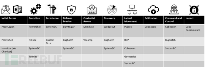 该组织使用众所周知的“经典”凭据访问工具(如mimikatz)和自主编写的应用程序。它还利用了受害公司所用软件中的漏洞,且这些漏洞大多数是已知的问题,例如结合ProxyShell和ProxyLogon攻击Exchange服务器,以及Veeam数据备份和恢复服务中的安全漏洞。