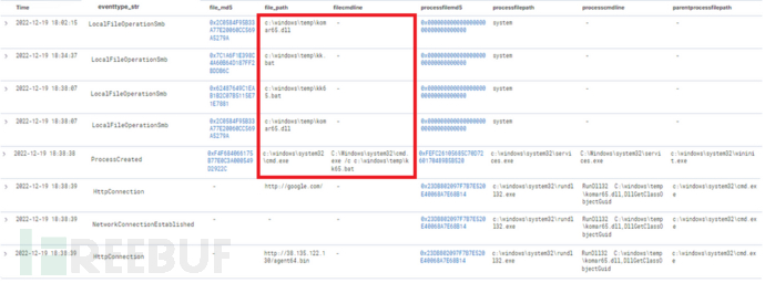 找出C2的名称有助于研究人员在遥测数据中定位与该服务器的通信历史。在恶意软件连接到C2后,它将两个可疑文件下载到受感染服务器的Windows文件夹中,然后执行这些文件。不幸的是,研究人员无法获得这两个文件进行分析,因为这些文件被从受感染的主机上删除了。
