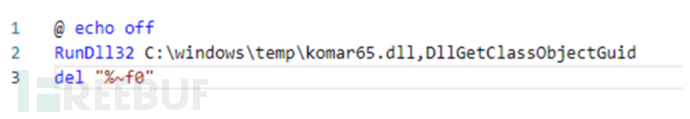 对kk65.bat的分析表明,它作为一个stager,通过启动rundll32并将komar65库(该库运行回调函数DLLGetClassObjectGuid)加载到其中来启动所有进一步的活动。