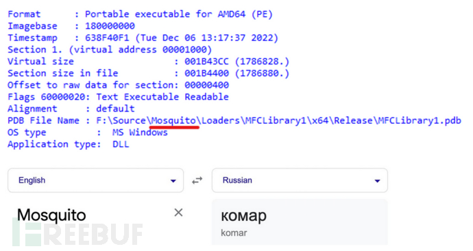 首先引起研究人员注意的是PDB文件的路径。里面有个文件夹叫“mosquito”,俄语翻译过来就是“komar”,后者是DDL名称的一部分,表明该团伙可能包括说俄语的人。