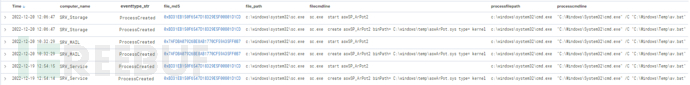后来,研究人员又在Exchange服务器和SRV_STORAGE主机上发现了利用Avast反rootkit驱动程序的类似活动。在这两种情况下,攻击者都使用BAT文件安装不安全的驱动程序,然后启动Burntcigar。