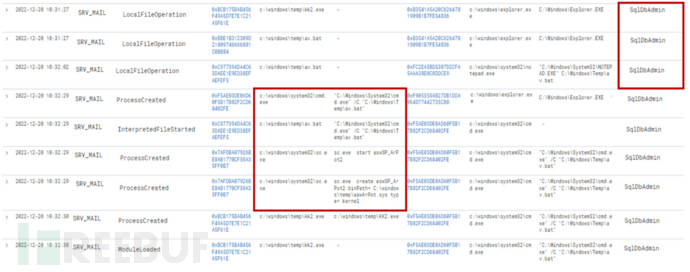 在SRV_MAIL上,SqlDbAdmin用户显示的活动与研究人员在以前的主机上观察到的活动相同。