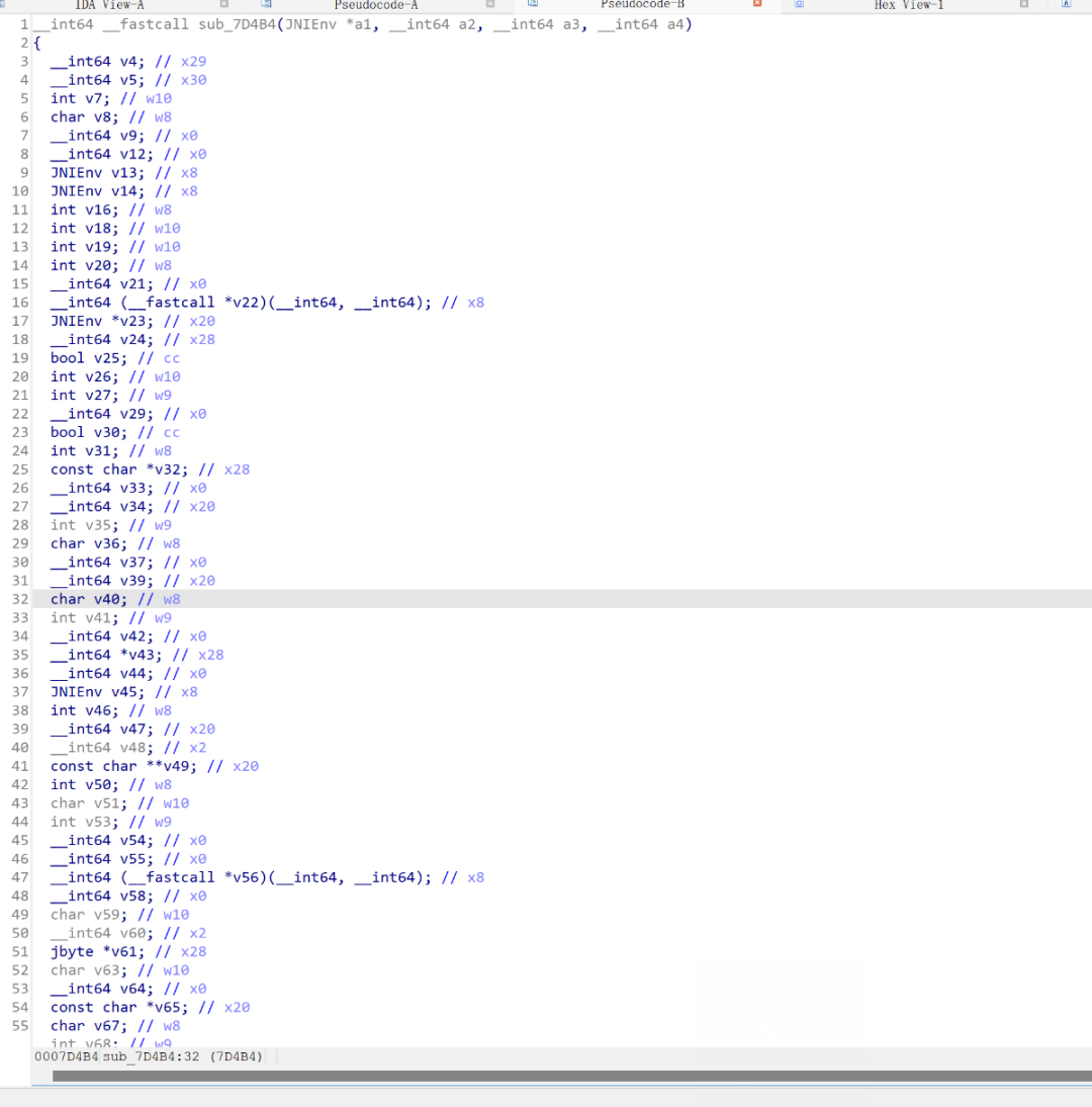 这个so在我分析的时候只在网上看到了NOP掉load此so的方式,但是并不适用于此app。主要检测了frida的各种字段,字符串等于,字符串比较等方式都有使用,还有prettyMethod检测,我曾尝试把这些检测的函数全部hook掉,可以通过检测,但是后续app会有很大几率卡住卡死,后续只能把线程函数nop掉。但是so中还有其他检测,对linker的操作动作很多,但是没有作为anti使用。猜测后续版本可能会出。