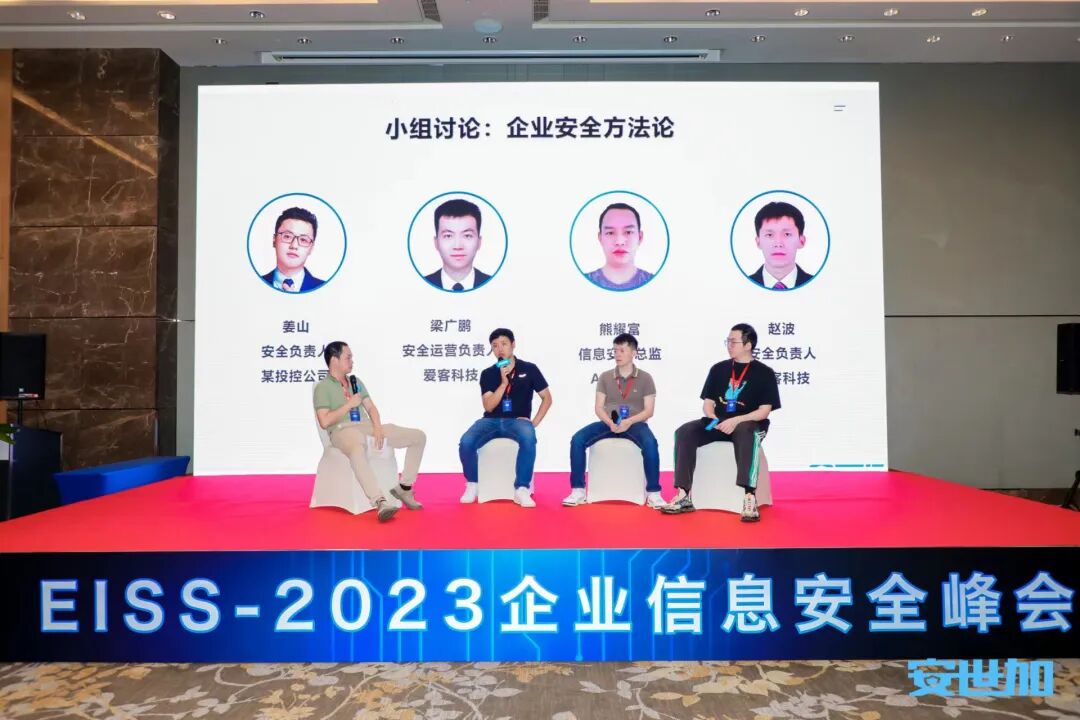分会场一的最后一个环节是由某投控公司的安全负责人姜山、爱客科技的安全运营负责人梁广鹏、爱客科技的安全负责人赵波及Akulaku的信息安全总监熊耀富组成的小组讨论:企业安全方法论。