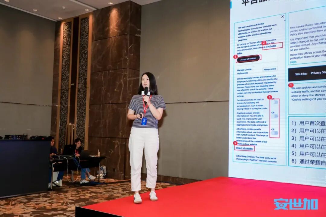 第四位演讲嘉宾是来自荣耀的IT安全隐私负责人康琼,她的演讲主题是《保障数据主体权利的探索与实践》。