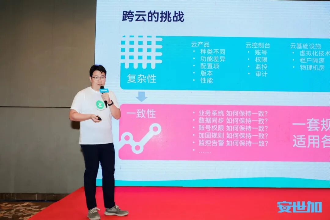 第七位演讲嘉宾是来自众安保险的安全负责人肖矜,他的演讲主题是《跨云安全体系建设》。