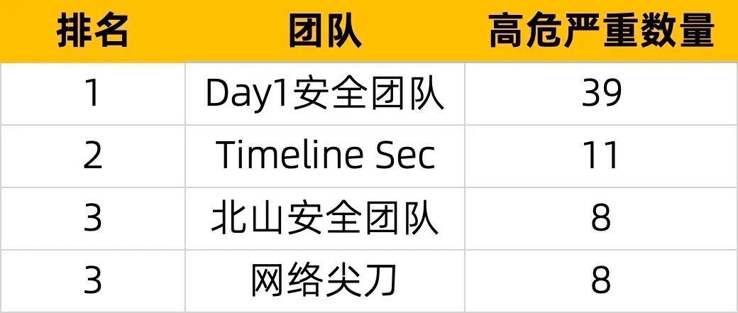 活动期间提交高危有效漏洞数量前三名的白帽子,均可获得额外奖励1000元