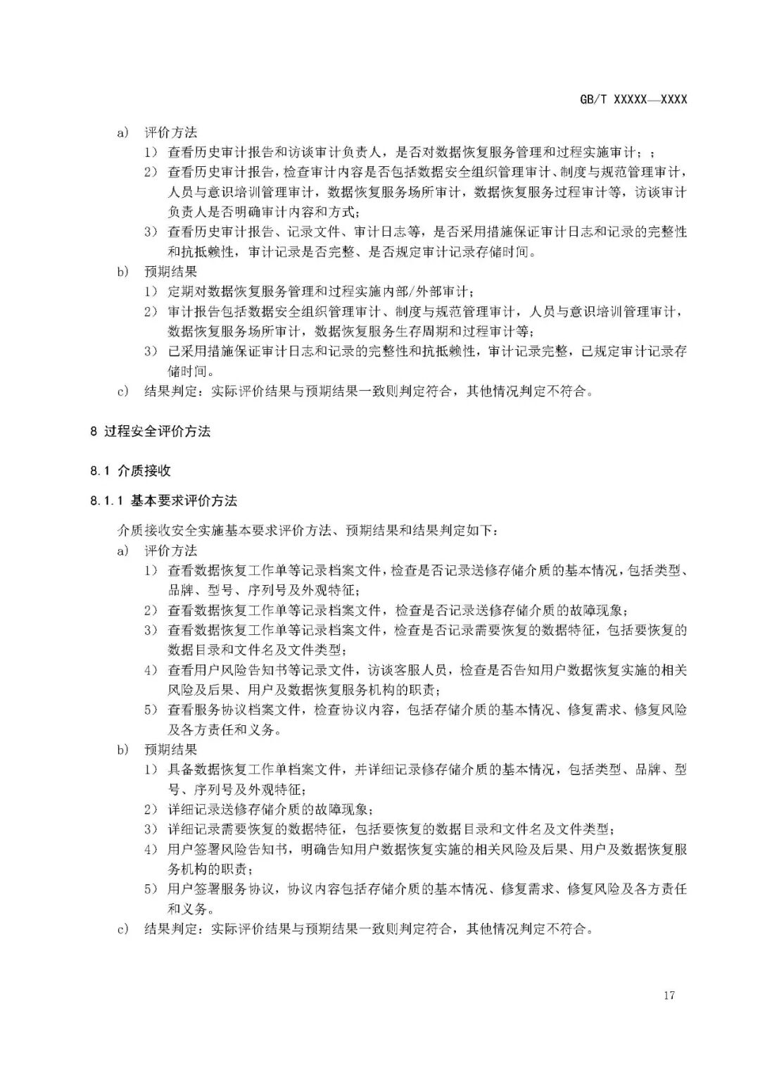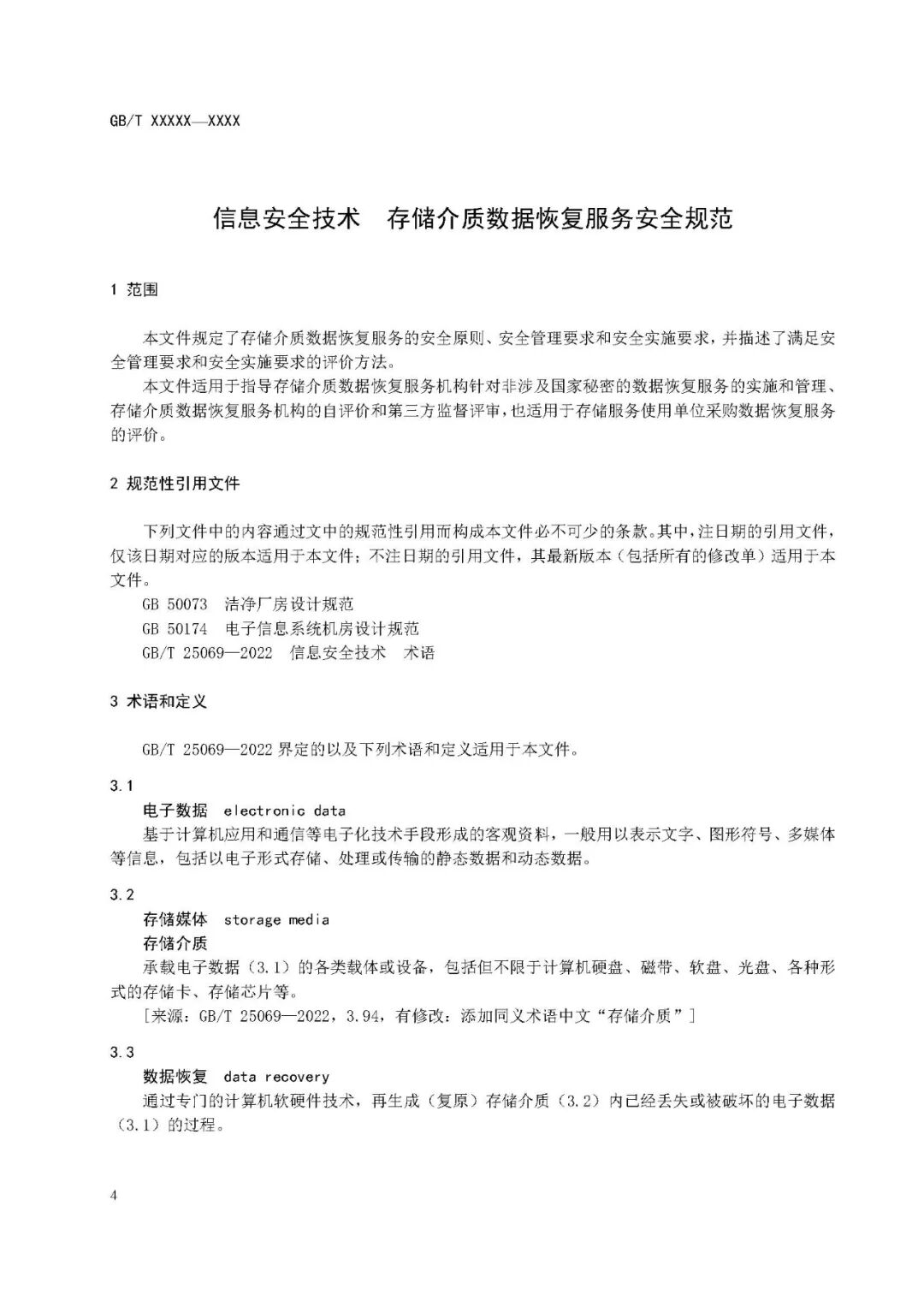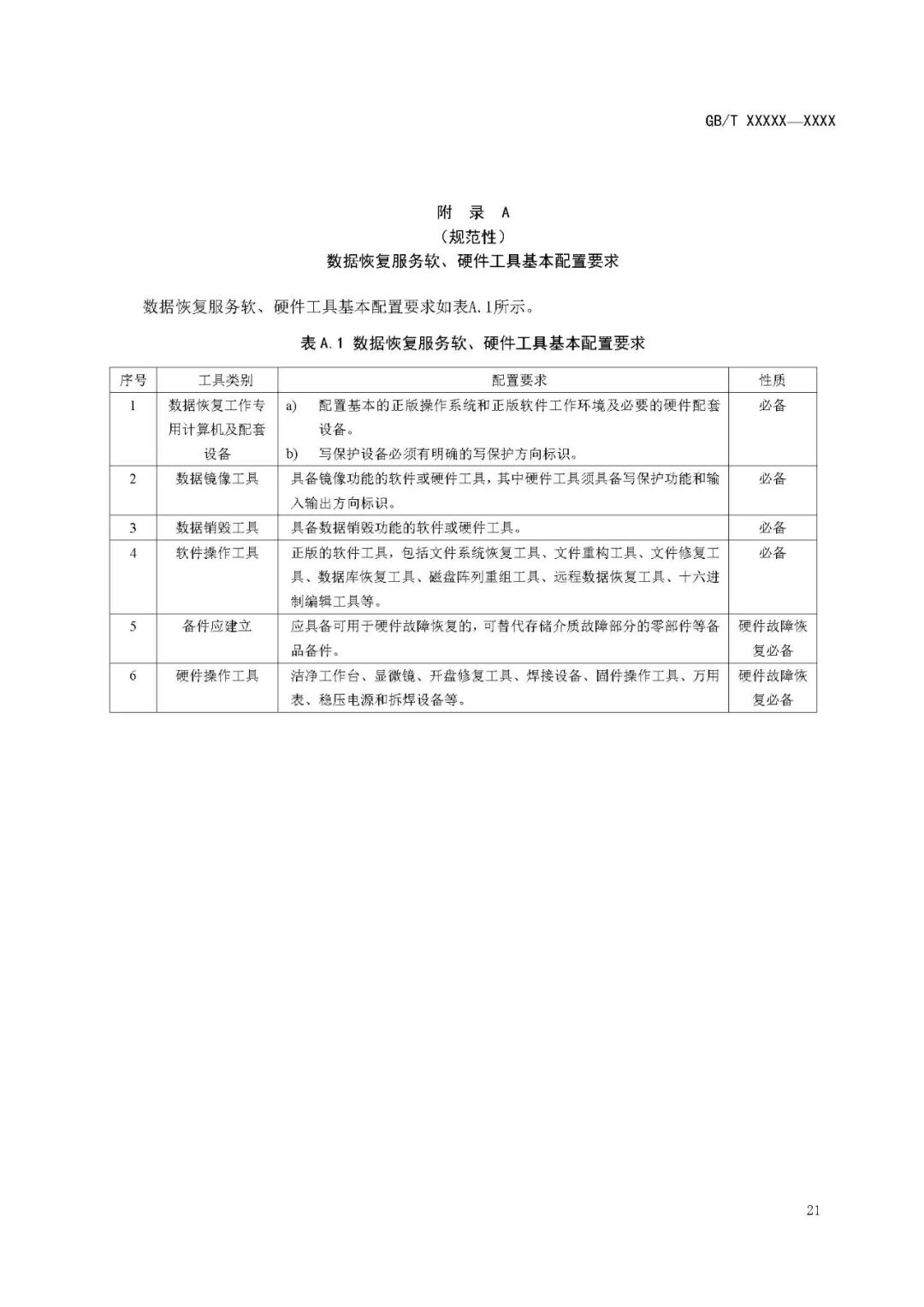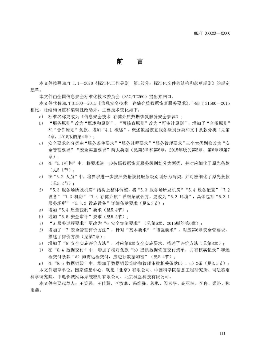 全国信息安全标准化技术委员会归口的国家标准《信息安全技术 存储介质数据恢复服务安全规范》现已形成标准征求意见稿。