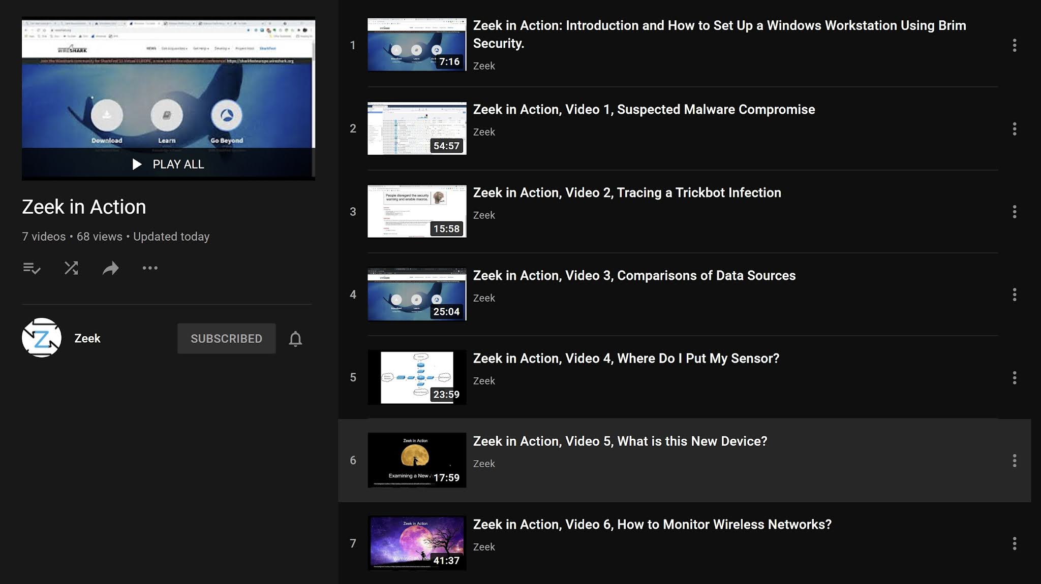 Zeek in Action VideosThis is a quick note to point blog readers to my Zeek in Action Y
