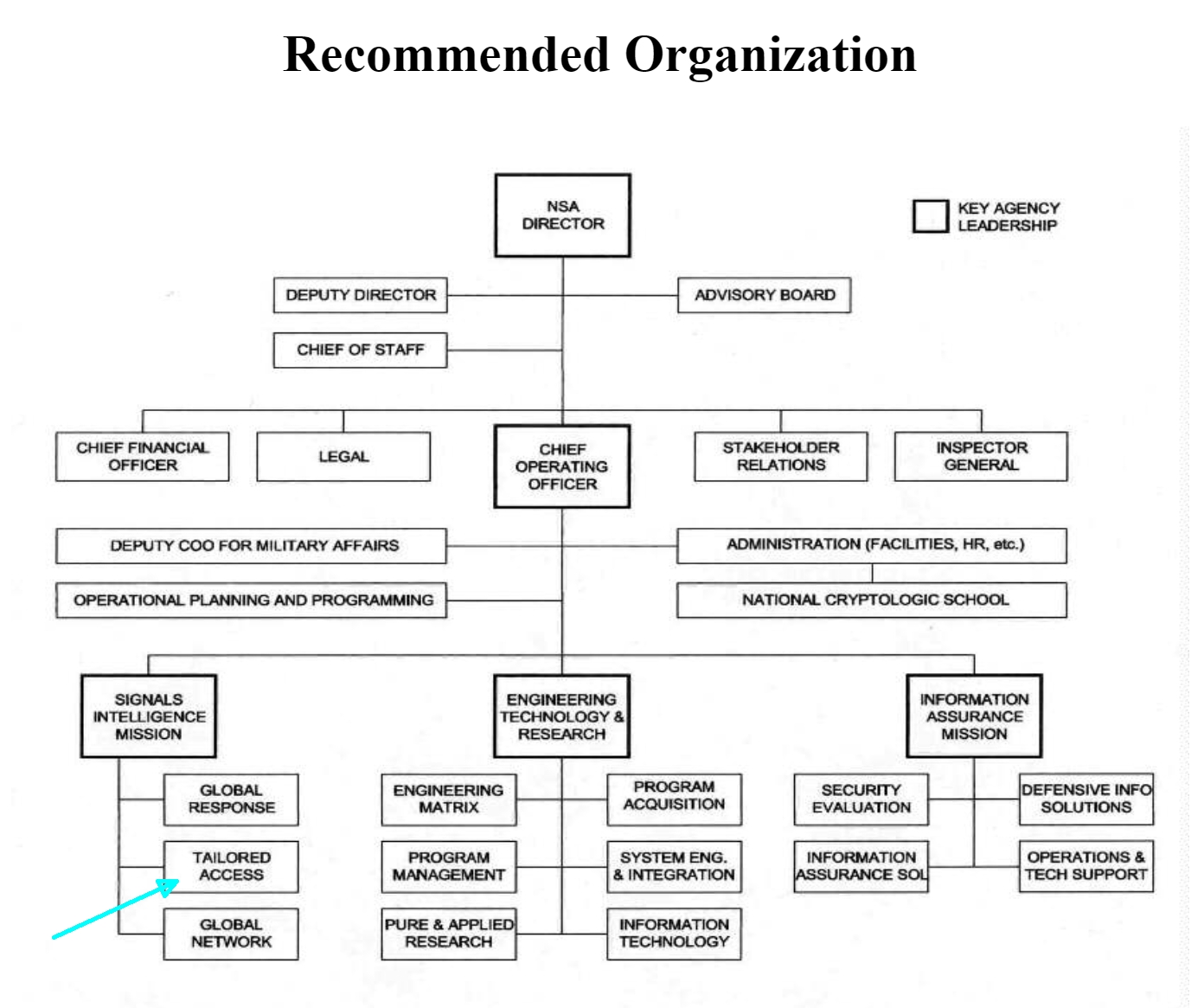 "Fort Meade’s would be the third box on the new SIGINT organizational chart—“tailored access.”