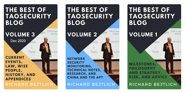 If you'd like to learn more about this history of the APT, check out my newest book -- The Best of TaoSecurity Blog, Volume 2. I devote an entire chapter to blog posts and new commentary on the APT. Volume 1 arrived a few months before this new book, and I'm working on Volume 3 now.