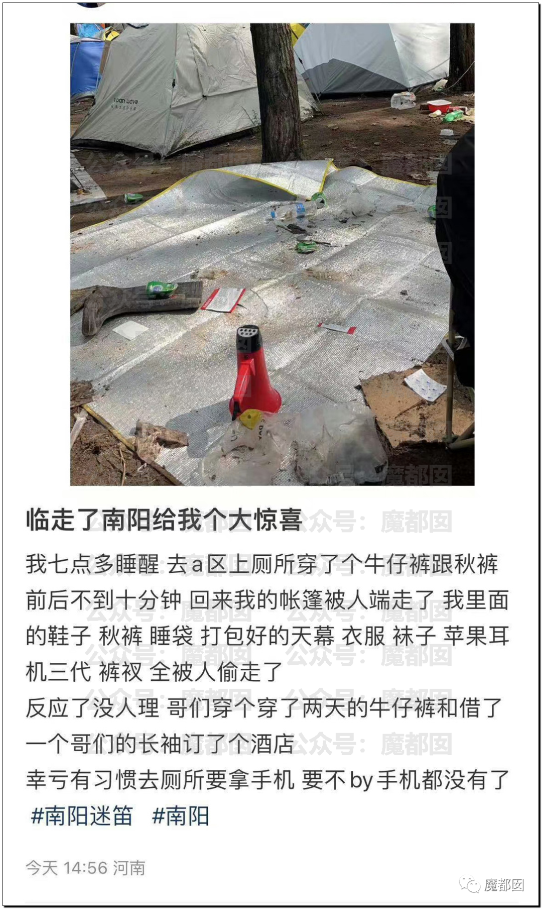 人神共愤!河南南阳!2023年不偷井盖改公然抢劫了!迷笛音乐节有个迷笛营,乐迷们很多都在当地就地帐篷,以便随时随地享受音乐的盛宴。然后,一天乐迷们回营地,发现营地被一锅端了,是的,被偷的一塌糊涂。 2023-10-4 04:49:28 Author: 利刃信安攻防实验室(查看原文) 阅读量:65 收藏