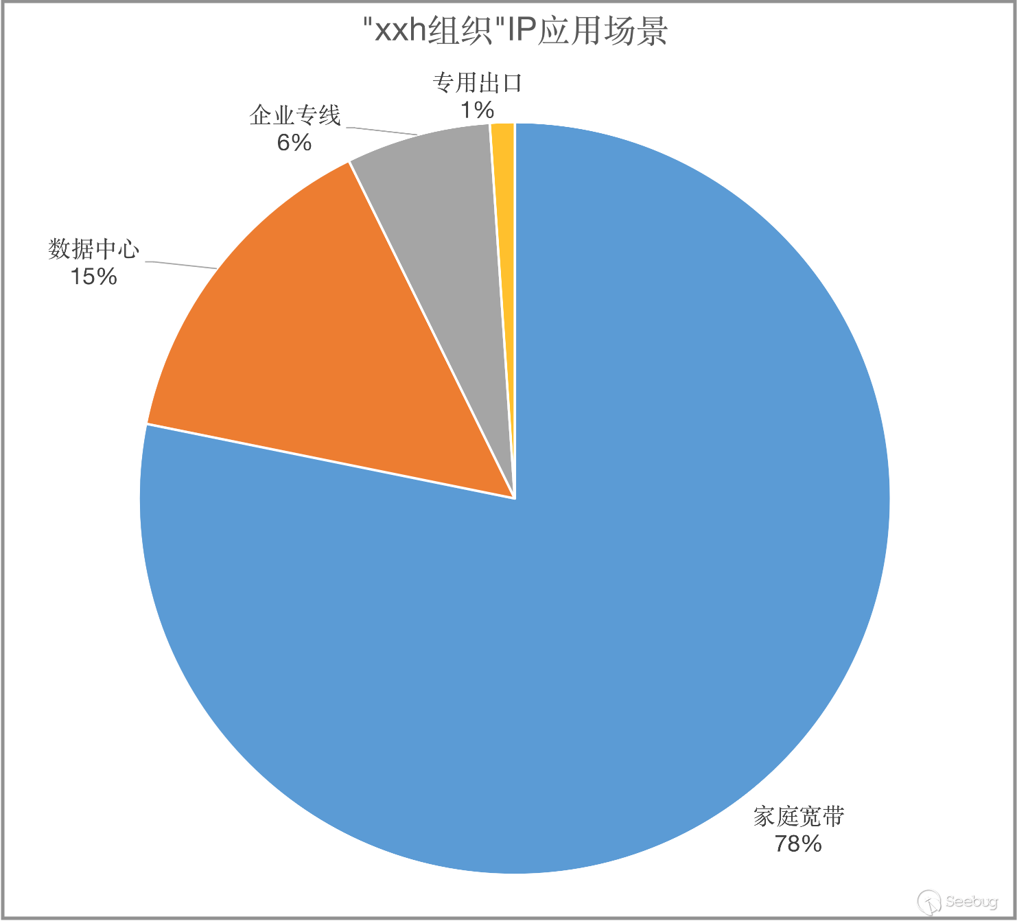 查看这些IP应用场景的情况,如下图所示。应用场景为家庭宽带和数据中心的IP占了绝大多数。