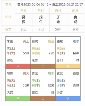 再看生成这件事原因父母。朱雀芮士临父母落留连这个主要看父母落留连,就是舍不得,有牵挂。主要原因还有朱雀,代表对方好看。芮土王大武也可以理解成她有魅力,比较有性格。