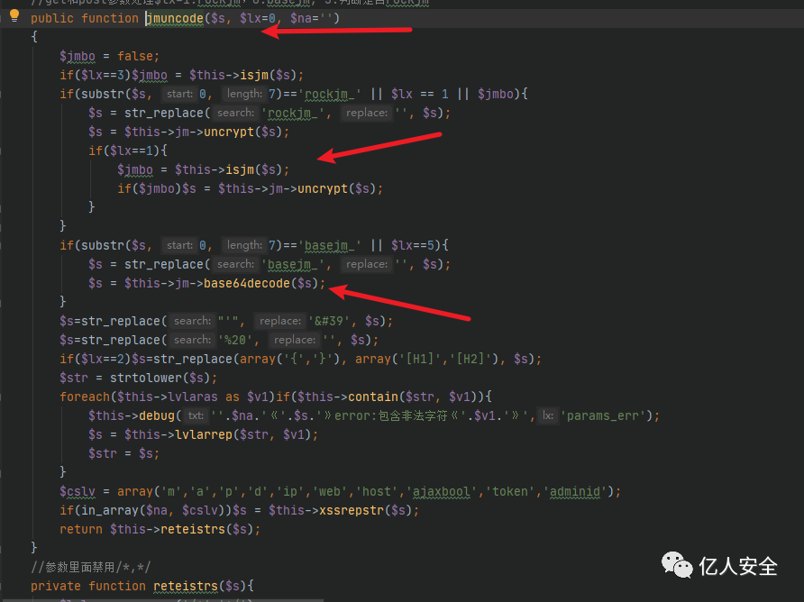 jmuncode() 函数是用来对传入的参数进行过滤以及非法检测的。