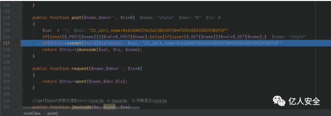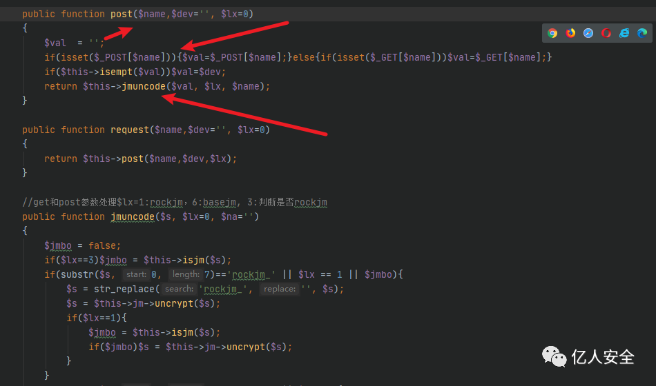 接着看post是如何传参的,发现封装的post()函数可以接收post以及get传参,而下面的jmuncode()函数