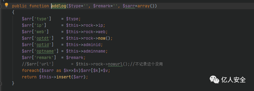 当num最后一位为反斜杠时,SQL语句变为,select xxx from xxx where abc=’\’,至此SQL语句出现问题,从而抛出异常,触发debug的addlogs方法,在该cms中,debug是默认被开启的,我们跟进addlogs方法。