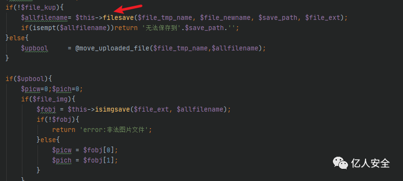 我们从 upfileChajian.php 文件中发现该upfileChajian类就是用来实现文件上传的一个类,而这的up()方法中的issavefile()方法是用来进行后缀判断的,我们跟进该方法。