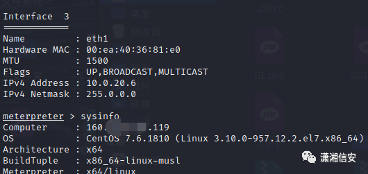 (1) 先生成linux木马,反弹shell到msf上,因为是外网,别忘了出网,再查看下当前权限![]()