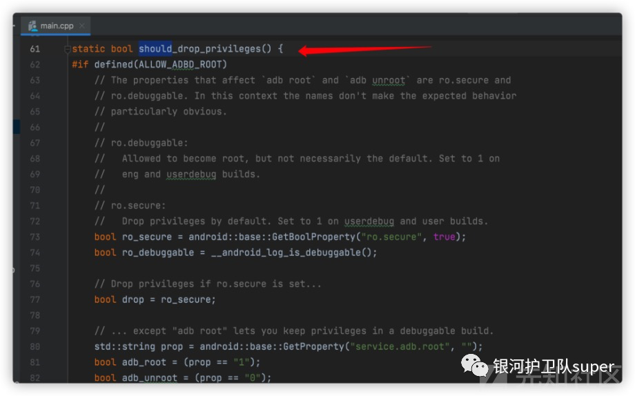 adb 的root 权限是在system/core/adb/adb.c 中控制。主要根据ro.secure 以及 ro.debuggable 等system property 来控制。