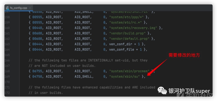 3、/system/core/libcutils/fs_config.cpp中/system/xbin/su修改为/system/xbin/修改的名称