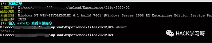 接下来试试看执行命令,无法执行命令,得到系统 2008