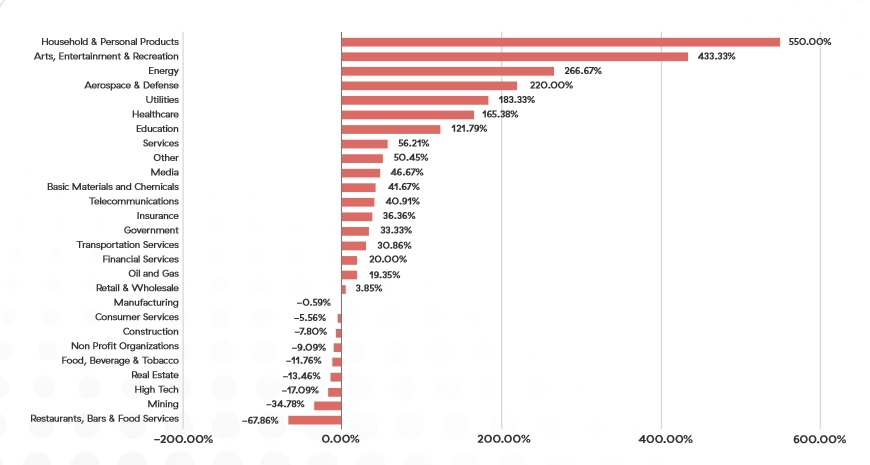 研究人员发现针对家庭和个人等C端用户的“双重勒索”攻击在2023年激增了惊人的550%,此外,针对艺术、娱乐和休闲行业的攻击也大幅增加了433.33%。值得注意的是,在2022版报告中,上述行业的攻击基线相对较低,这使得它们的增长看起来非常明显。