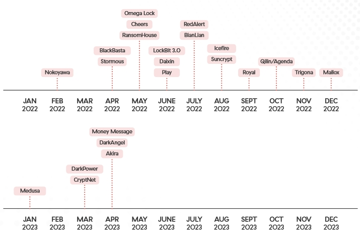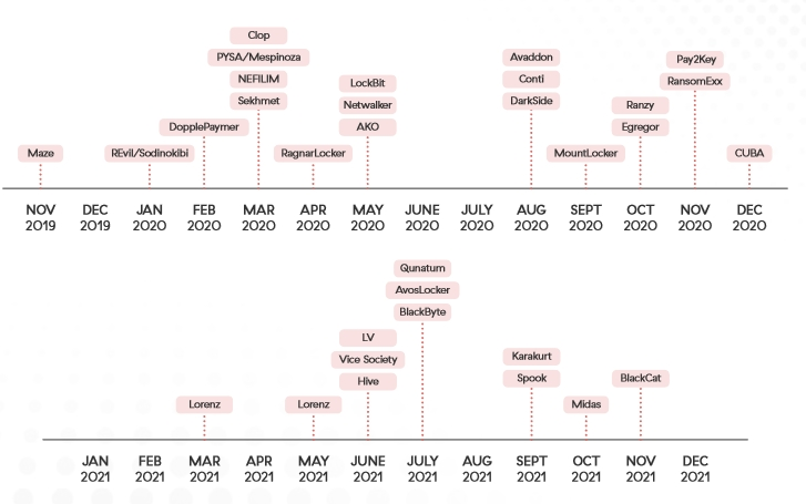 勒索软件家族发布受害者数据的时间轴