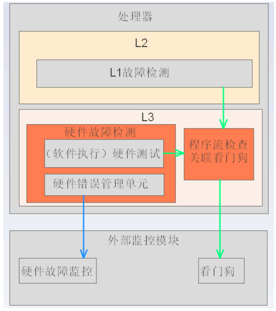 电子电气系统硬件诊断:监控电子电气系统硬件故障,比如 : 控制器的 CPU 核故障、RAM 故障、ROM 故障等。