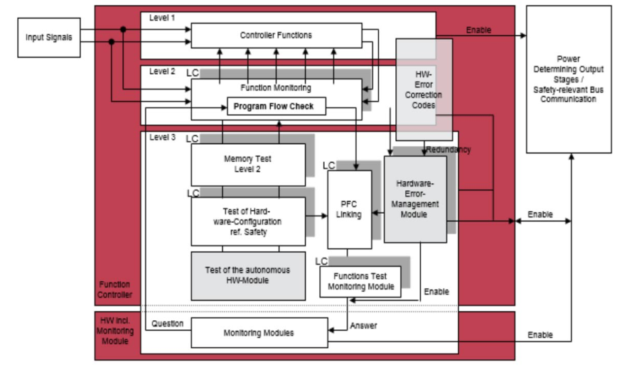 电子电气系统的失效,既包含由于软硬件设计错误引起的系统性失效,也包含由随机硬件故障引起的失效。根据系统架构,需要设计各种安全机制去预防和探测功能故障,并能够在故障发生时,避免或者降低危害的发生。这就需要一个强壮的功能安全软件架构来管理和控制这些安全机制,降低功能安全整体开发难度。