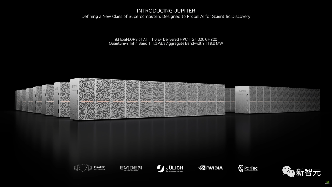 云服务方面,除了英伟达自己投资的CoreWeave、Lambda 和 Vultr 之外,亚马逊云科技、谷歌云、微软 Azure 和甲骨文云基础设施,都将成为首批部署基于 H200 实例的供应商。此外,在新的 H200 加持之下,GH200 超级芯片也将为全球各地的超级计算中心提供总计约 200 Exaflops 的 AI 算力,用以推动科学创新。在 SC23 大会上,多家顶级超算中心纷纷宣布,即将使用 GH200 系统构建自己的超级计算机。德国尤里希超级计算中心将在超算 JUPITER 中使用 GH200 超级芯片。这台超级计算机将成为欧洲第一台超大规模超级计算机,是欧洲高性能计算联合项目(EuroHPC Joint Undertaking)的一部分。Jupiter 超级计算机基于 Eviden 的 BullSequana XH3000,采用全液冷架构。它总共拥有 24000 个英伟达 GH200 Grace Hopper 超级芯片,通过 Quantum-2 Infiniband 互联。每个 Grace CPU 包含 288 个 Neoverse 内核, Jupiter 的 CPU 就有近 700 万个 ARM 核心。它能提供 93 Exaflops 的低精度 AI 算力和 1 Exaflop 的高精度(FP64)算力。这台超级计算机预计将于 2024 年安装完毕。由筑波大学和东京大学共同成立的日本先进高性能计算联合中心,将在下一代超级计算机中采用英伟达 GH200 Grace Hopper 超级芯片构建。作为世界最大超算中心之一的德克萨斯高级计算中心,也将采用英伟达的 GH200 构建超级计算机 Vista。伊利诺伊大学香槟分校的美国国家超级计算应用中心,将利用英伟达 GH200 超级芯片来构建他们的超算 DeltaAI,把 AI 计算能力提高两倍。此外,布里斯托大学将在英国政府的资助下,负责建造英国最强大的超级计算机 Isambard-AI——将配备 5000 多颗英伟达 GH200 超级芯片,提供 21 Exaflops 的 AI 计算能力。英伟达、AMD、英特尔: