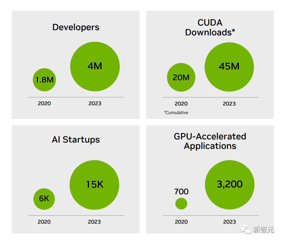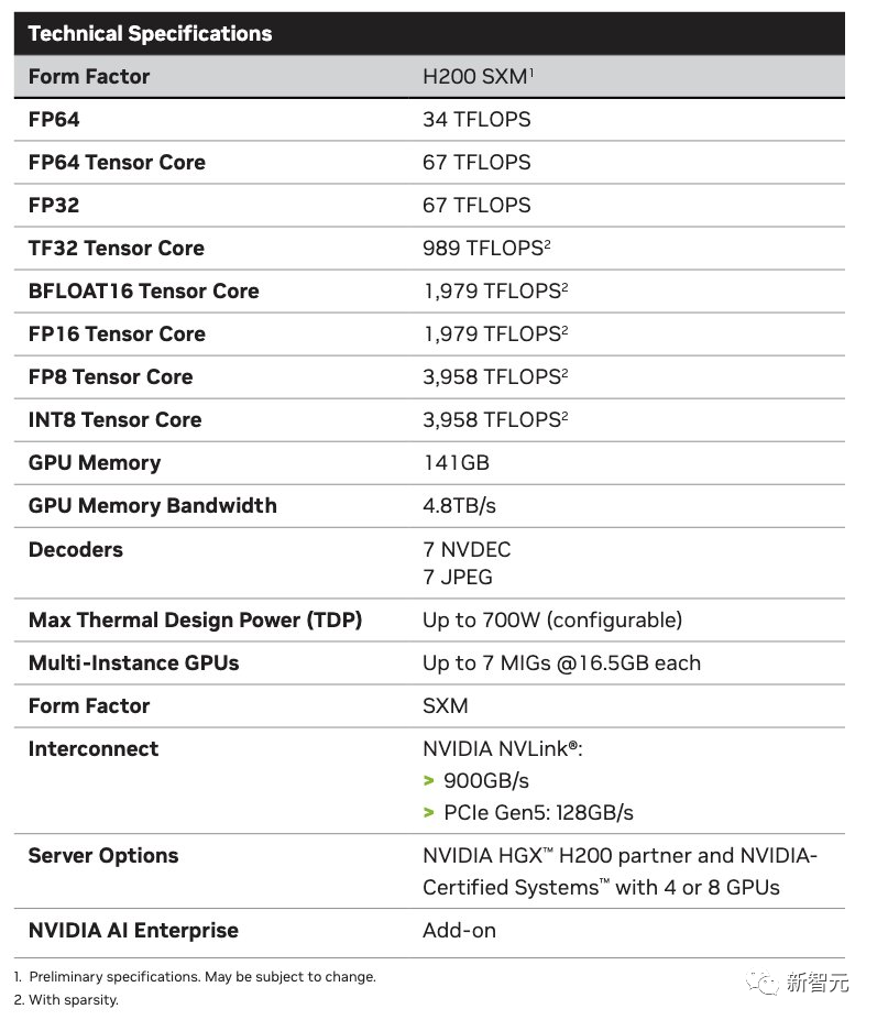 谁拥有 H100,是硅谷最引人注目的顶级八卦至于 H200 系统,英伟达表示预计将于明年二季度上市。 同在明年,英伟达还会发布基于 Blackwell 架构的 B100,并计划在 2024 年将 H100 的产量增加两倍,目标是生产 200 多万块 H100。而在发布会上,英伟达甚至全程没有提任何竞争对手,只是不断强调「英伟达的 AI 超级计算平台,能够更快地解决世界上一些最重要的挑战。」随着生成式 AI 的大爆炸,需求只会更大,而且,这还没算上 H200 呢。赢麻了,老黄真的赢麻了!H200,将为全球领先的 AI 计算平台增添动力。它基于 Hopper 架构,配备英伟达 H200 Tensor Core GPU 和先进的显存,因此可以为生成式 AI 和高性能计算工作负载处理海量数据。英伟达 H200 是首款采用 HBM3e 的 GPU,拥有高达 141GB 的显存。与 A100 相比,H200 的容量几乎翻了一番,带宽也增加了 2.4 倍。与 H100 相比,H200 的带宽则从 3.35TB/s 增加到了 4.8TB/s。英伟达大规模与高性能计算副总裁 Ian Buck 表示——要利用生成式人工智能和高性能计算应用创造智能,必须使用大型、快速的 GPU 显存,来高速高效地处理海量数据。借助 H200,业界领先的端到端人工智能超算平台的速度会变得更快,一些世界上最重要的挑战,都可以被解决。