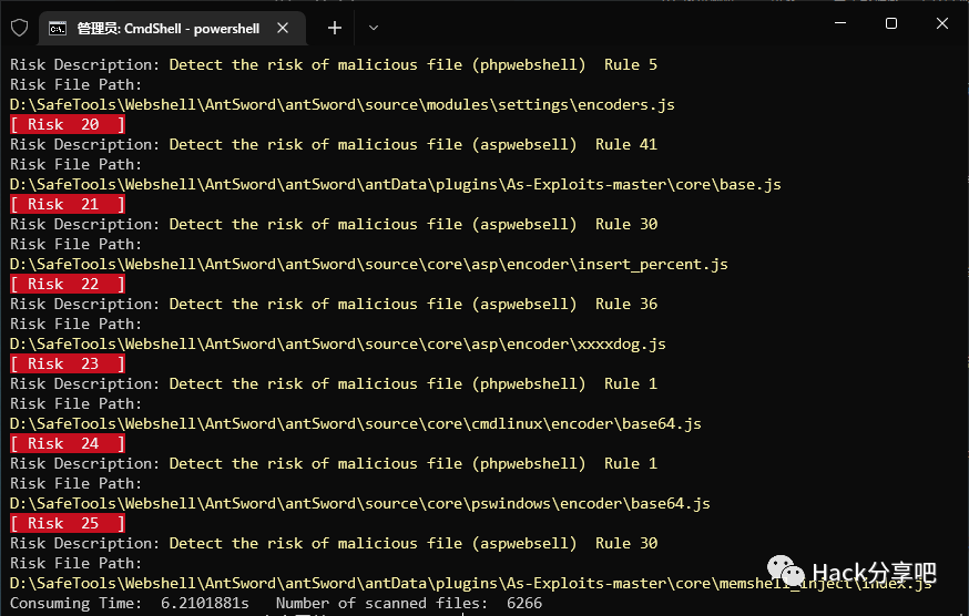 在D-Eyes工具目录下子目录yaraRules中,部分规则会触发杀毒软件告警,因为该目录存放的规则文件与杀软查杀规则相符,会触发杀软告警,直接加白即可,不会存在实际危害。