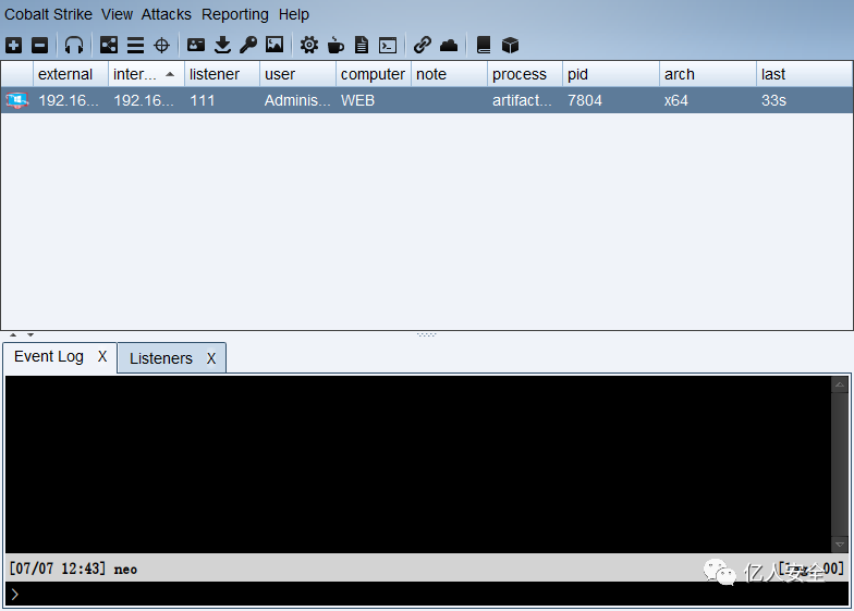 使用cs生成beacon.exe,然后下载到data主机上,执行exe文件。
