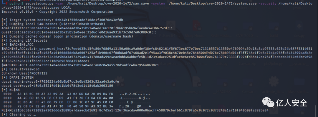 利用获取到的管理员hash远程连接导出sam数据库中原来的计算机hash