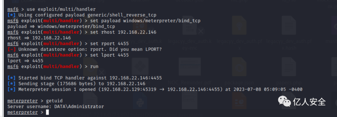 然后使用msf开启监听,上传shell.exe,成功上线。