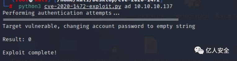 发现该主机为域内主机,存在ZeroLogon置空漏洞。