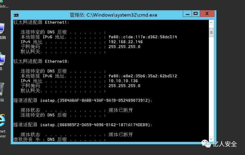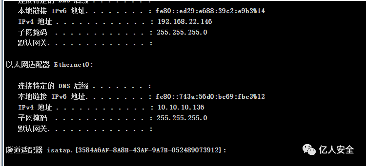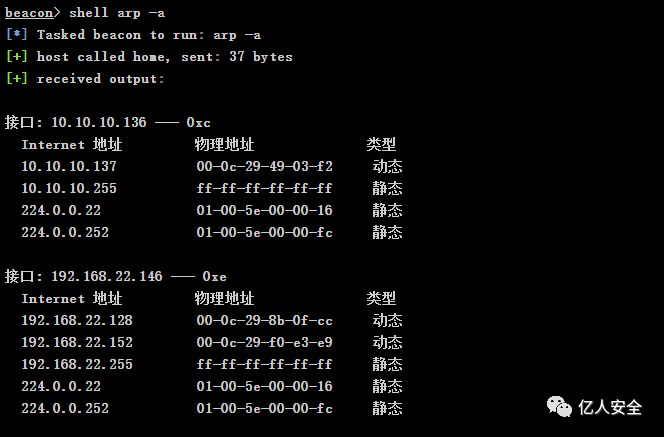 成功上线,发现该主机为双网段主机,10端为域内地址段。