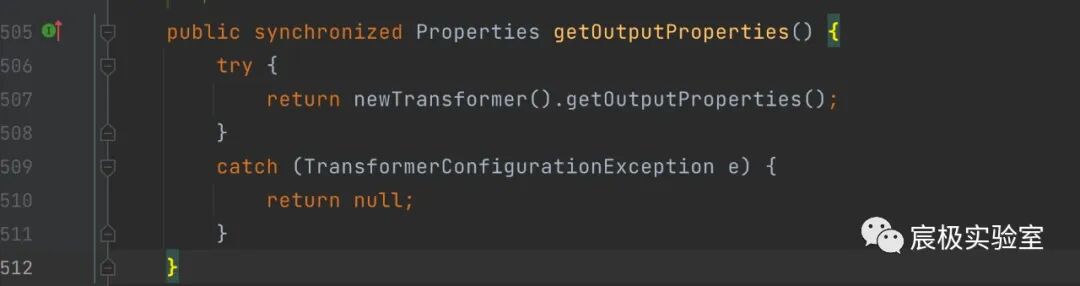 而我们查看TemplatesImpl.getOutputProperties()方法,我们发现其调用了TemplatesImpl.newTransformer()