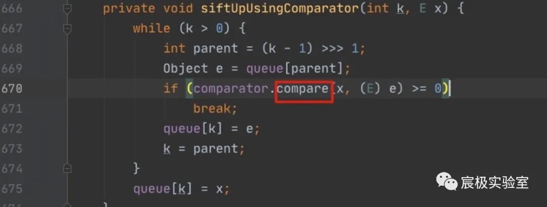 而我们上面提到了,CC2利用链的逻辑的点在于siftDownUsingComparator()方法中存在调用compare方法触发计算器。