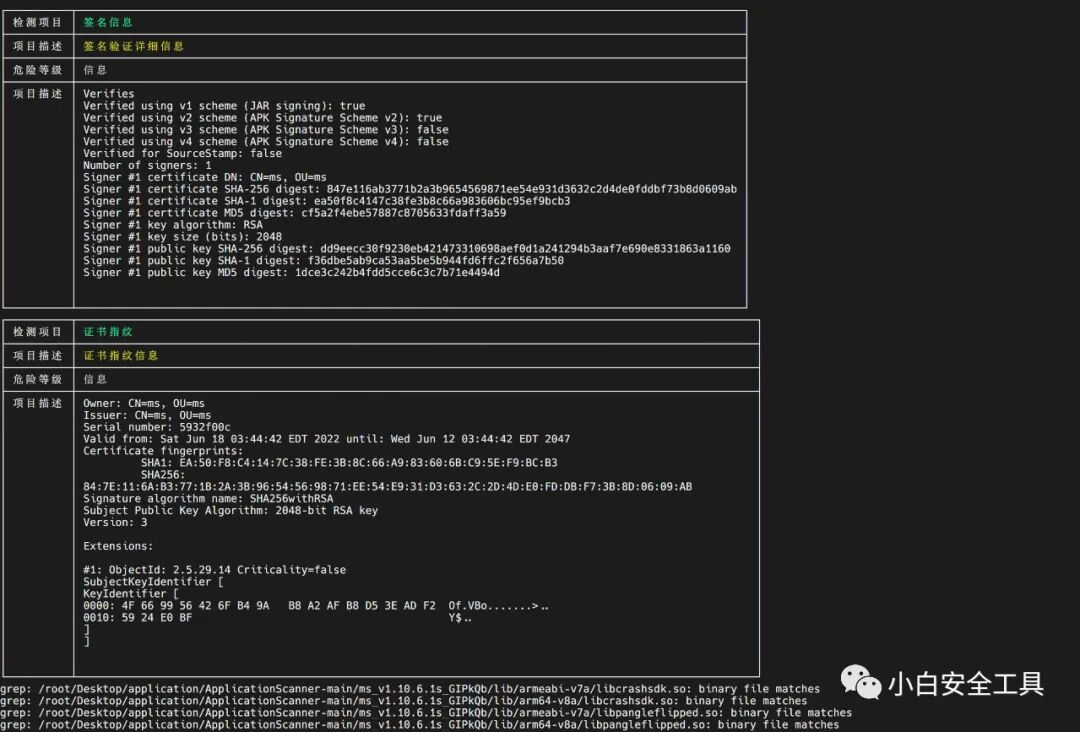 ApplicationScanner为apk、ipa、so、aar、jar等库代码扫描工具,