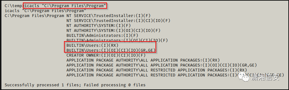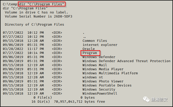 假设我们在 C:\Windows\* 中没有找到任何可写文件夹,我们的下一个选择是尝试在 C:\Program Files 中找到可写文件夹或文件。