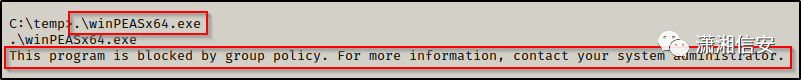 现在,受害者身上有 winPEAS,我们尝试执行它,但发现我们被组策略阻止了。