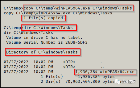 copy C:\temp\winPEASx64.exe C:\Windows\Tasks